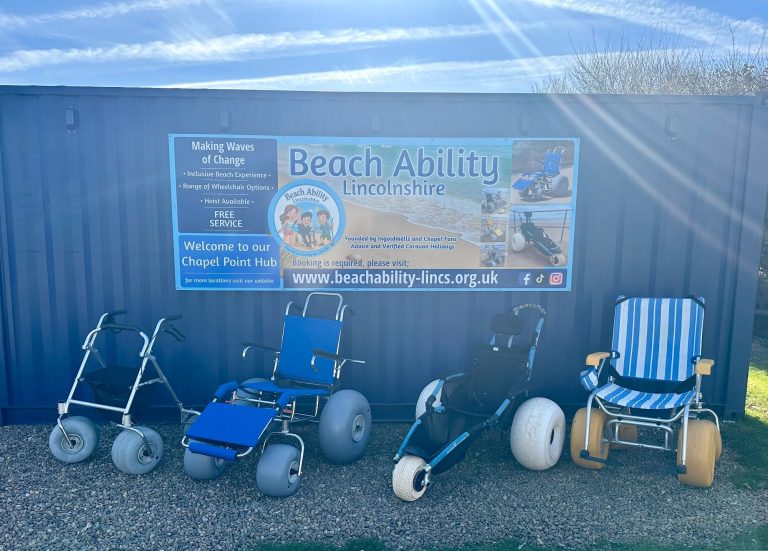 Our Chapel Point Hub is located in the car park of the North Sea Observatory at Chapel Point, Chapel St Leonards, only a moments walk from the beach. Officially opened on 1st November 2025, this second hub holds special significance for us. The original funds that founded Beach Ability Lincolnshire were raised by the Ingoldmells and Chapel Fans Facebook Group, so it feels especially fitting that Chapel St Leonards is home to our first expansion after our first hub at Ingoldmells — a tribute now to both the community at Ingoldmells and Chapel St Leonards, where our journey began. It is also with sincere gratitude that we thank Chapel St Leonards Parish Council for granting us permission to locate our hub on these grounds and for their continued support of our work.